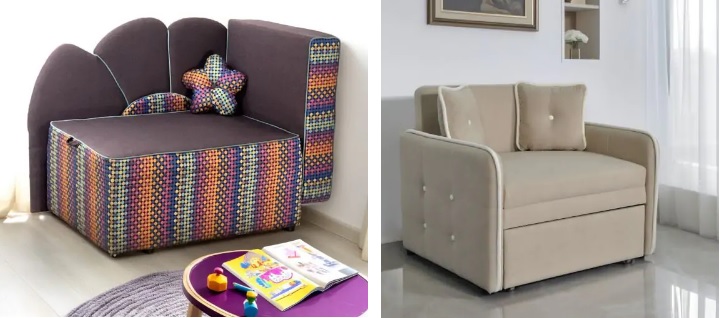 - Крісла – класичні, реклайнери, безкаркасні варіанти.