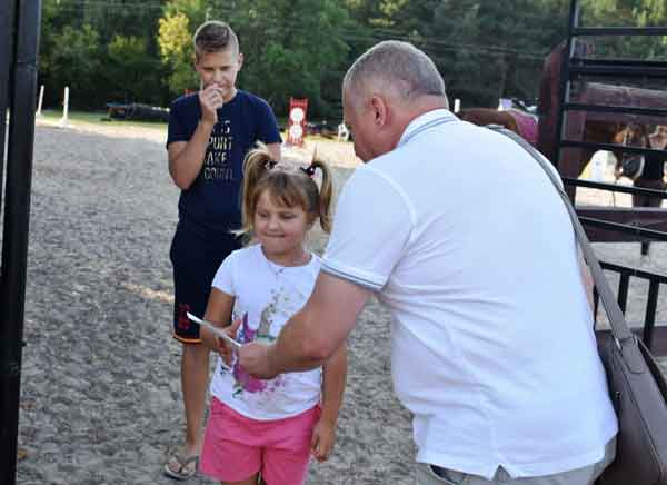 Напередодні Дня знань 15 діток, батьки яких загинули у зоні АТО, мали можливість побувати в урочищі «Фасти» і покататися на конях. Таку мрію багатьох діток допоміг здійснити власник фермерського господарства Олександр Шайнюк. ![]() Кожна дитина, яка завітала у гості до коника “Пиріжка”, змогла подолати свій острах та отримати незабутні враження від верхової їзди. ![]() Завітав у гості до малечі заступник міського голови Ігор Прокопів. Він щиро привітав діток з початком нового навчального року та вручив подарункові сертифікати для придбання необхідного канцелярського приладдя. ![]() Приєднався до поздоровлень і благочинний Ковельського міського деканату ПЦУ протоієрей Василь Мичко. ![]() Дивіться також: НА КОВЕЛЬЩИНІ ВПЕРШЕ ЗМАГАЛИСЯ У КОНКУРІ. ВІДЕО Завдяки спільним зусиллям вдалося зробити гарне свято для дітей. Хлопчики і дівчатка отримали корисні подарунки, смакували фруктами та солодощами, покаталися на конях, погралися у “Квача”, побавилися з маленькими мешканцями ферми. |