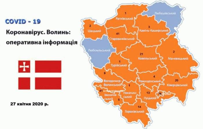 Станом на 10.00 год. 27 квітня в області зареєстровано 254 випадки COVID-19, які підтверджені лабораторно методом ПЛР. Одужало 49 осіб. Шість випадків хвороби завершилось летально. ![]() За добу зареєстровано 13 нових випадків COVID-19: м.Луцьк (5), Ковельський район (4), Ківерцівський район (3), м.Нововолинськ (1). Одужала 1 особа. Загалом за весь період спостереження коронавірусна хвороба виявлена: • м. Луцьк – 76 випадків, в т.ч. 2 летальних; • м. Нововолинськ – 41 випадок, в т.ч. 2 летальних; • Старовижівський район – 41 випадок, в т.ч. 1 летальний; • Ковельський район – 21 випадок; • Ківерцівський район – 20 випадків; • Горохівський район – 14 випадків; • Луцький район – 13 випадків, в т.ч. 1 летальний; • Володимир-Волинський район – 9 випадків; • Іваничівський район – 5 випадків; • Рожищенський район – 4 випадки; • Камінь-Каширський район – 3 випадки; • Маневицький район – 2 випадки; • Шацький район – 2 випадки; • Ратнівський район – 1 випадок; • Локачинський район – 1 випадок; • Турійський район – 1 випадок. Хворобу виявлено у 76 медичних працівників (30% від усіх зареєстрованих випадків). За попередню добу надійшло 12 повідомлень про підозру на COVID-19. Всього на Волині методом ПЛР на виявлення вірусу COVID-19 обстежено 1748 осіб, в тому числі за останню добу – 97 осіб. |