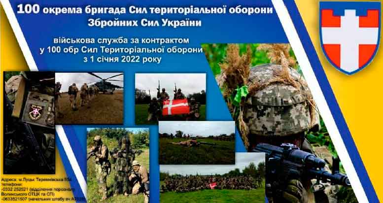 Волинська окрема бригада територіальної оборони запрошує на військову службу за контрактом до 54 окремого батальйону територіальної оборони (в/ч А7063). ![]() На військову службу за контрактом на посади офіцерського, сержантського та рядового складу приймаються громадяни віком від 18 до 60 років, які мають вищу, професійно-технічну, повну або базову загальну середню освіту, які проходили або не проходили військову службу. Вимоги до кандидтів на військову службу за контрактом – це бажання стати справжнім професіоналом, патріотом і захисником свого рідного краю. Основними завданнями територіальної оборони регіону є: – охорона та захист державного кордону України; – забезпечення умов для надійного функціонування органів державної влади, органів військового управління, стратегічного (оперативного) розгортання військ; охорона та оборона важливих об’єктів і комунікацій; – боротьба з диверсійно-розвідувальними силами, іншими озброєними формуваннями агресора та антидержавними незаконно утвореними озброєними формуваннями; – підтримання правового режиму воєнного стану. Підрозділи планується розгорнути до 15 січня 2022 року. УВАГА: Для кандидатів, які вступають на службу до частин територіальної оборони, діють ті ж пільги, що і для кандидатів, які вступають на військову службу за контрактом до інших частин ЗСУ. За детальною інформацією звертайтесь до Ковельського районного територіального центру комплектування та соціальної підтримки за адресою: м. Ковель, вул. Грушевського, 12, тел. 5-03-30 тел. моб. 0962953181, 0931550086. ![]() |