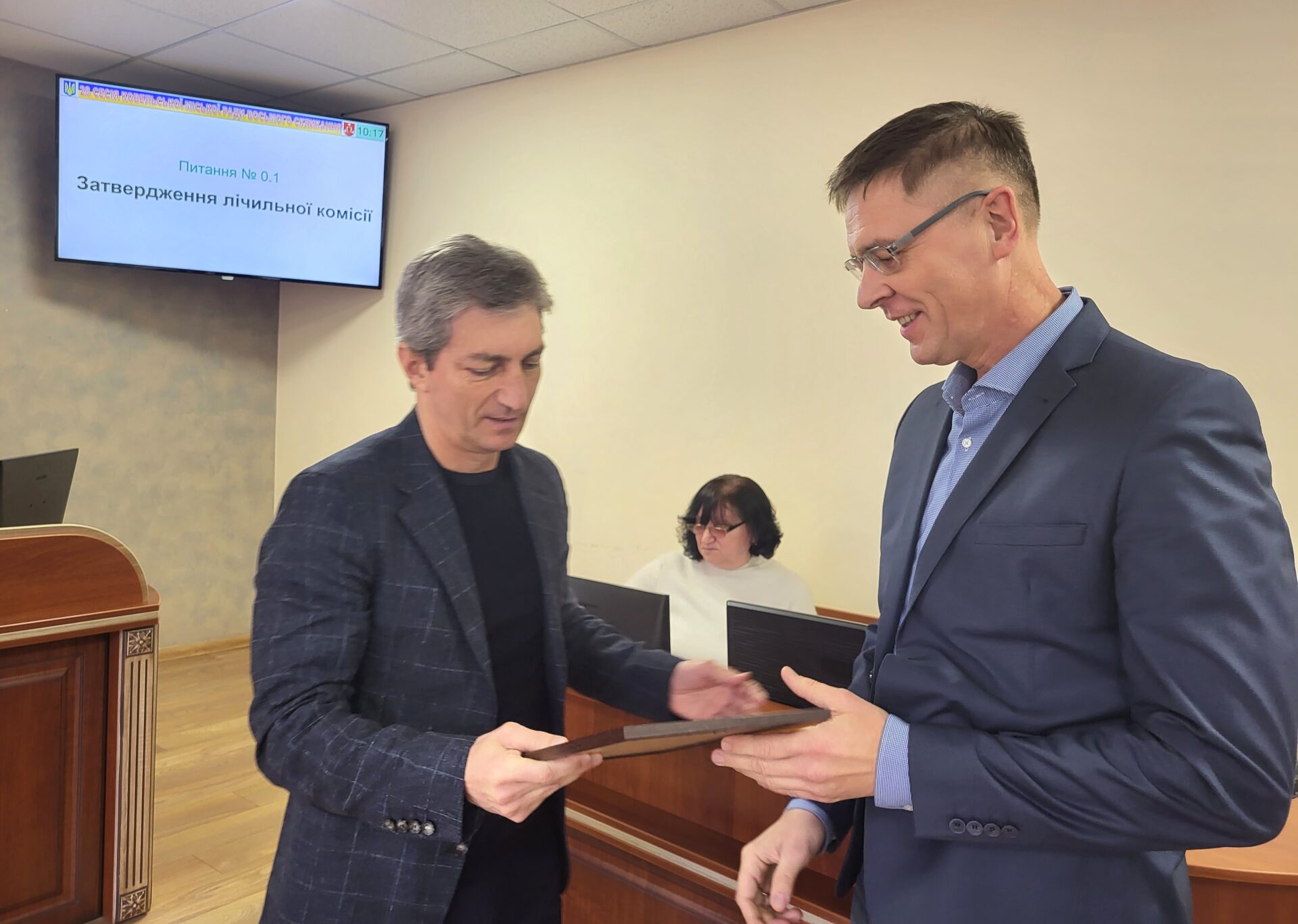 | Учора відбулась чергова сесія міської ради. На початку засідання Ігор Чайка вручив Подяку депутату міської ради Сергію Скороходу, яка надійшла від командира військової частини А 0216 полковника Ю. Андрієнка.