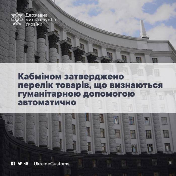 Так, 07 березня 2022 року, Кабінет Міністрів України затвердив постанову №224 «Про затвердження переліку категорій товарів, що визнаються гуманітарною допомогою без здійснення процедури визнання таких товарів гуманітарною допомогою у кожному конкретному випадку та внесення змін до деяких постанов Кабінету Міністрів України з питань гуманітарної допомоги».З метою спрощення митного оформлення гуманітарної допомоги на період дії воєнного стану в Україні товари, зазначені у переліку, не потребують окремого рішення уповноваженого державного органу. Однак на товари, які не включені до такого переліку, або мають позначення (наприклад металоконструкції, ємності, промислові машини, механічні пристрої тощо) має бути письмове рішення про визнання таких товарів гуманітарною допомогою: - голови Ради міністрів Автономної Республіки Крим; - голів обласних державних адміністрацій; - голови Київської, Севастопольської міських державних адміністрацій; - керівників відповідних військово-цивільних або військових адміністрацій (у разі їх утворення). З повним переліком товарів, які підпадають під дію Постанови, та з формою декларації можна ознайомитися за посиланням https://bit.ly/3Crbjcm Текст постанови https://bit.ly/3pTNJ34 |