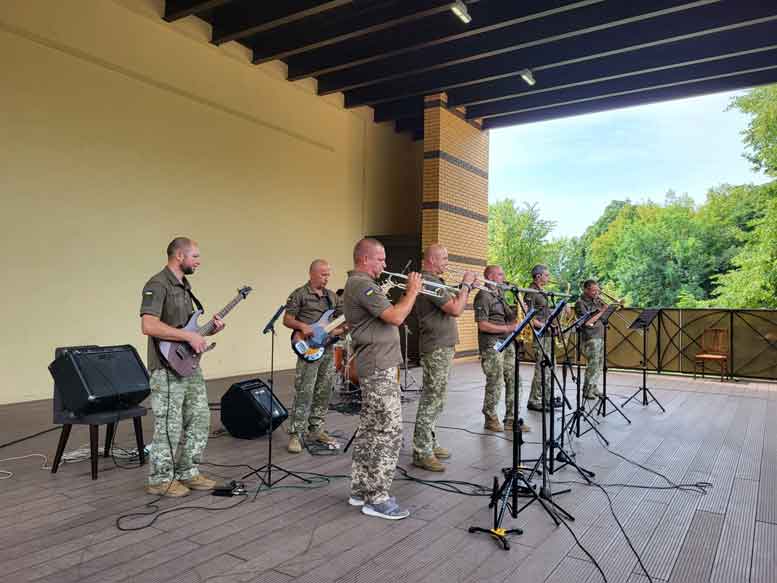 Сьогодні у Ковелі на парковій сцені концертну програму представив колектив військово-музичного центру Сухопутних військ ЗСУ з міста Чернігова. Це уже їх 33 концерт лише упродовж останнього місяця. ![]() Керівник Роман Павлів розповідає, що вони своїми виступами прагнуть підбадьорити людей у різних містах України. Їх уже чули у Харкові, Запоріжжі, Дніпрі, Луцьку. Часто вони бувають на передовій. ![]() “Траплялись і такі концерти, коли зустрічали хлопців, які повертались з бою. Їм важко, але музика тут спрацьовує найшвидше, переналаштовує наших воїнів на хороший настрій, мирне життя і додає позитивних емоцій”, – каже Роман Павлів. ![]() Послухати пісні у виконанні військово-музичного центру Сухопутних військ ЗСУ прийшло чимало ковельчан. Міський голова Ігор Чайка подякував артистам за чудовий концерт. ![]() “У нас сильний мистецький фронт. Такі таланти уміють піднімати моральний дух. Спасибі, що підтримуєте наших воїнів і маєте ще час співати для нас”, – зазначив мер. ![]() |