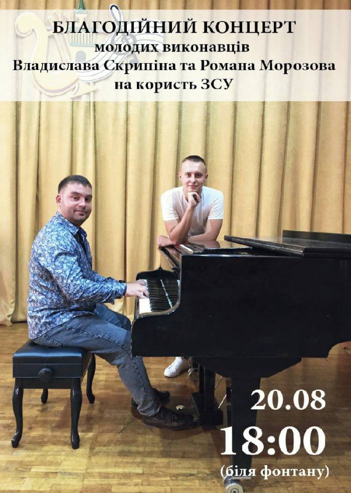 Роман Морозов та Владислав Скрипін запрошують на благодійний концерт, який відбудеться у суботу, 20 серпня о 18.00 біля фонтану у центрі Ковеля. Захід відбудеться за підтримки управління культури, молоді, спорту та туризму. ![]() |