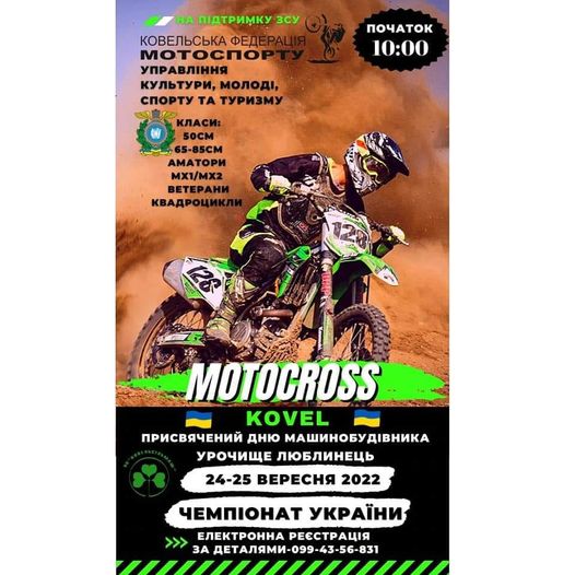 Цей вікенд у Ковельській громаді буде багатим на спортивні події, які присвячені Дню машинобудівника. 24-25 вересня — 38-і Всеукраїнські змагання з веслування на байдарках і каное ( міське водосховище). 24-25 вересня — чемпіонат з мотокросу, Відкритий кубок Ковеля серед аматорів та ветеранів ( урочище Люблинець, мототрек). ![]() |