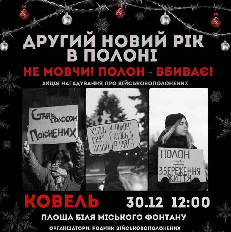 У Ковелі 30 грудня о 12.00 год. в центральній частині міста відбудеться акція «Другий Новий рік в полоні. Не мовчи! Полон – вбиває».