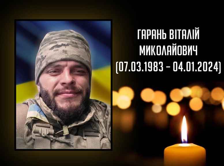 Ковель продовжує втрачати… У боях із окупантською росією загинув ковельчанин ГАРАНЬ ВІТАЛІЙ МИКОЛАЙОВИЧ (07.03.1983 – 04.01.2024). Про це повідомляє міський голова Ігор Чайка на своїй сторінці у Фейсбук. ![]() “Віталій Гарань був мобілізований у грудні 2022 року. Служив у десантно-штурмових військах. Солдат, командир аеромобільного відділення загинув поблизу міста Мар’їнка Донецької області. Про час прибуття кортежу із тілом Героя додому та поховання повідомимо згодом. Висловлюю щирі співчуття батькам Людмилі Костянтинівні та Миколі Йосиповичу, братові Романові, донькам Ірині та Ользі й усім, хто знав, любив і чекав Віталія! Вічна пам’ять, честь і слава!”, – йдеться у дописі. |
