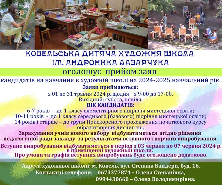 Ковельська дитяча художня школа оголошує набір учнів