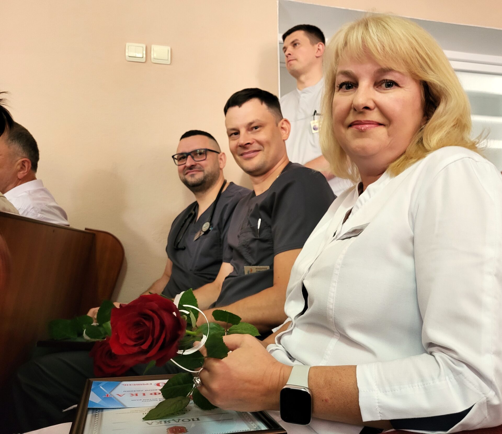 Цьогоріч вдруге медичні працівники відзначають своє професійне свято 27 липня. Напередодні з цієї нагоди відбулись урочистості у Ковельському МТМО, - повідомляє офіційний сайт Ковельської міської ради.![]() Привітали зі святом і подякували людям в білих халатах міський голова Ігор Чайка, його заступниця Наталія Маленицька, начальник військової районної адміністрації Ольга Черен, голова районної ради В’ячеслав Шворак, декан Благовіщенського округу ПЦУ протоієрей Василь Мичко, настоятель лікарняного храму Агапіта Києво-Печерського отець Василь Скулинець. Ковелю вдалося упродовж останніх років зробити помітний крок уперед у багатьох напрямках охорони здоров’я. Досвід наших медиків запозичують колеги з інших регіонів, у них вчаться, з них беруть приклад. Генеральний директор закладу Валентин Вітер, звертаючись до своїх колег, зазначив, що на сьогодні Ковельське МТМО – лідер медичної галузі України, лікарня входить у п’ятірку найкращих закладів у державі. А всього цього вдалося досягти завдяки дружному, професійному колективу та підтримці місцевої влади. ![]() “Бути медиком в Україні – це бути готовим працювати 24/7. Рятувати людей, повертати до життя військових, які боронять нашу країну. Ваша професія – одна з найгероїчніших. У часи, коли розпочалась війна, тисячі ваших колег змінили білі халати на пікселі і берці. Низький уклін вам за вірність покликанню і обов’язку, милосердя, гуманізм, сердечну теплоту і чуйність”, – підкреслив міський голова Ігор Чайка. Мер вручив Подяки та сертифікати на грошову винагороду за досягнуті успіхи, високий професіоналізм, сумлінну працю, особистий внесок у розвиток галузі охорони здоров’я, створення комфортних умов для пацієнтів та з нагоди Дня медичного працівника: Білоус Оксані Василівні – лікарю загальної практики – сімейному лікарю міської амбулаторії загальної практики-сімейної медицини №2 Центру первинної медико-санітарної допомоги; ![]() Бондарчуку Анатолію Петровичу – лікарю-анестезіологу відділення анестезіології з ліжками для інтенсивної терапії центральної районної лікарні; Гергеші Ірині Олександрівні – начальнику технічного відділу; Козачук Оксані Дмитрівні – медичному статистику Центру первинної медико-санітарної допомоги; Кухарук Ользі Петрівні – лікарю з функціональної діагностики діагностичного відділення центральної районної лікарні; Лебідь Тетяні Ананіївні – оператору комп’ютерного набору; ![]() Подгурській Валентині Олександрівні – сестрі медичній стаціонару терапевтичного відділення центральної районної лікарні; Шевченко Тетяні Сергіївні – лікарю-терапевту відділення по наданню платних послуг та профілактичних медичних оглядів центральної районної лікарні. Красивим доповненням до привітань та слів вдячності став концерт, який підготували митці нашого міста. Дорогі медики, спасибі за титанічну роботу. Здоров’я вам, віри та сил. ![]() ![]() ![]() ![]() ![]() ![]() ![]() ![]() ![]() ![]() ![]() ![]() ![]() |