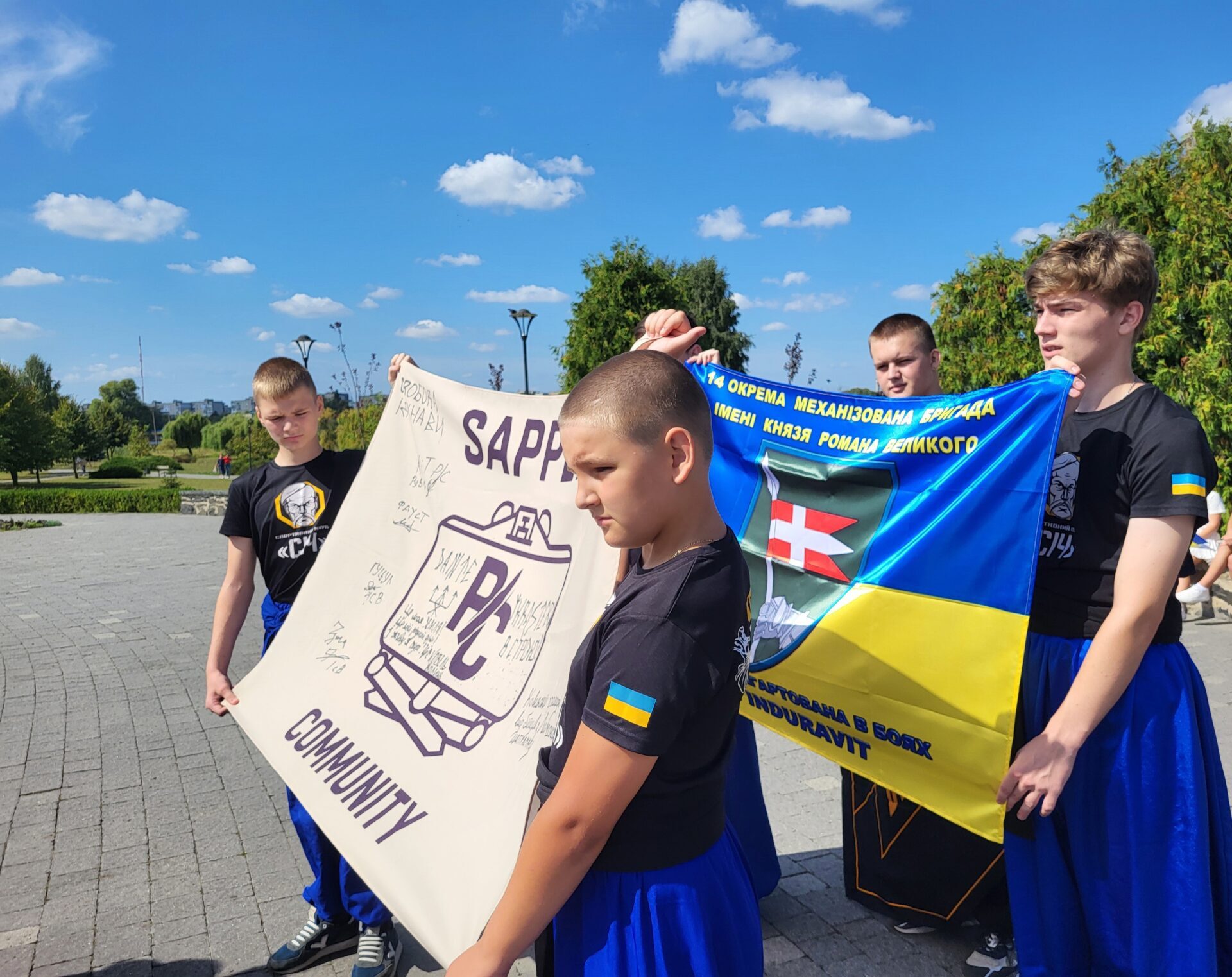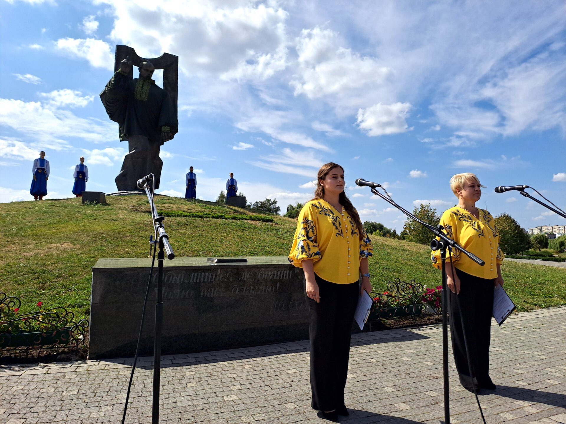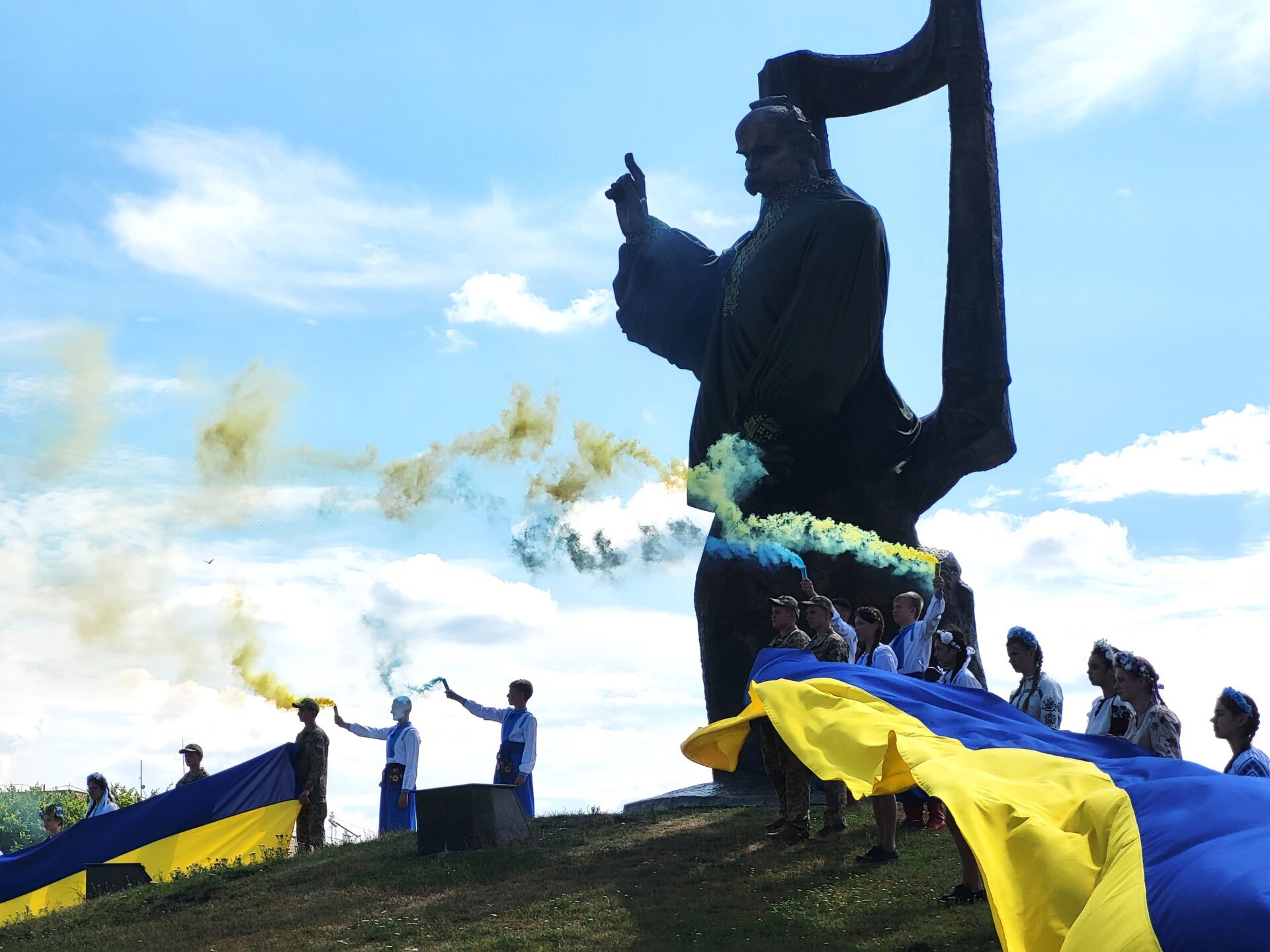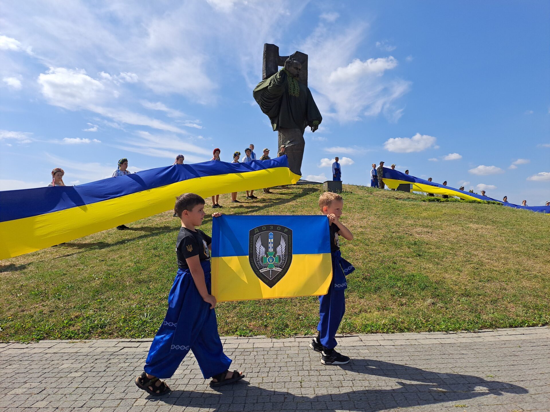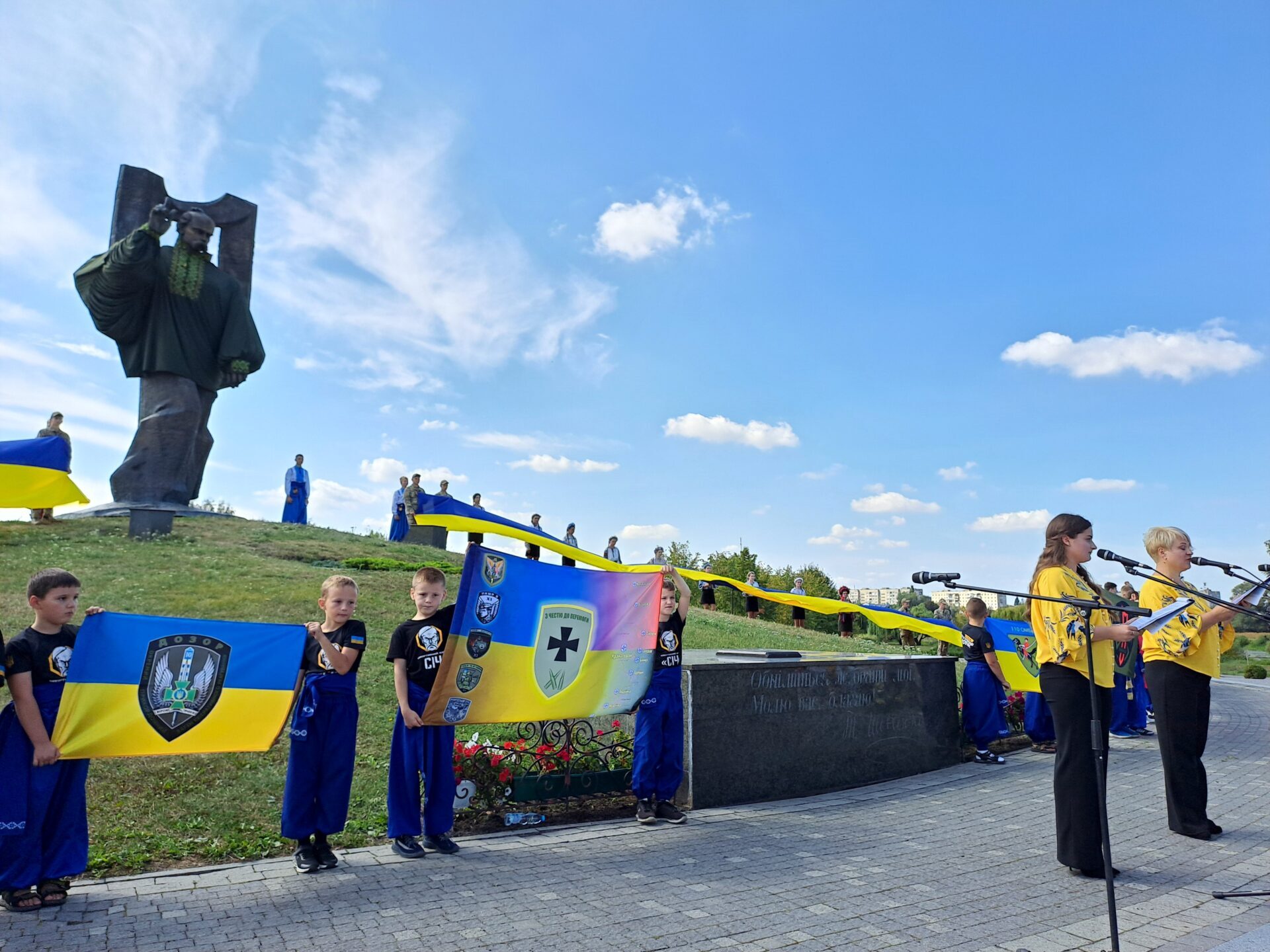 Крім синьо-жовтого полотнища, біля пам’ятника Кобзареві розгорнули прапори бойових підрозділів, які отримала Ковельська громада на знак вдячності за допомогу та підтримку.