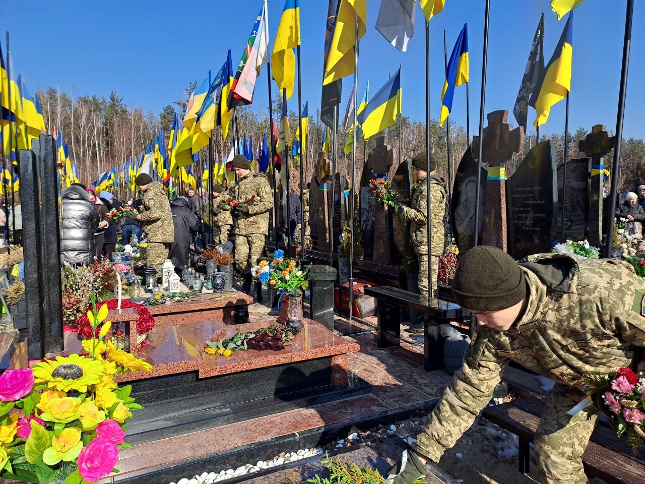 | «Дорого заплачено. Ми їх не пробачимо!». Трагедії цієї війни – у мільйонах сердець. Ми ніколи не забудемо Бахмут, Маріуполь, Бучу, Гостомель, Волноваху, Херсон. Сльози мами, біль в очах батька, розпач дитини… Зруйновані родини, міста і села… Ми ніколи не забудемо, яку ціну платимо за нашу незалежність. Три роки повномасштабної війни. Національний день молитви. Сьогодні наша громада зібралась, щоб вшанувати пам’ять Захисників і Захисниць, які полягли за Україну, усіх, чиє життя зупинилось через російських вбивць. ![]() Ковельчани разом у молитві просили про благословення для України. Це звучало і під час виконання Духовного гімну нашої країни «Боже великий, єдиний». «Тоді, три роки тому, ми згуртувалися і стали сильнішими. Наша країна жива, бореться і демонструє цілому світові свою незламність. Тож і сьогодні ми не маємо права на байдужість, зневіру. Далі кожен на своєму місці маємо робити все, щоб підтримувати українських мужніх воїнів, які стоять там, де палає земля, де рушиться бетон. Цей безкінечний лютий неодмінно скінчиться. Вірмо в Україну та допомагаймо нашим Збройним Силам », – звернувся до присутніх міський голова Ігор Чайка. ![]() Представники міської влади, громадськості поклали квіти до стели пам’яті загиблих земляків та Героїв Небесної Сотні, на могили Героїв, що на міському кладовищі та у селах наших старостинських округів. Разом із рідними військових помолились за упокій їхніх душ. ![]() Усі ці три роки, 1096 днів, ми не перестаємо вірити, що настане той світлий час, коли стихнуть вибухи і постріли, коли нарешті ми знову повернемось до нашого звичного мирного життя. І це станеться завдяки найкращій армії світу – українській. Сьогодні вона тримає фронт практично на лінії 3 тисяч кілометрів. Пам’ятаймо тих, хто поліг за нашу свободу. І не забуваймо тих, хто попри втому, біль та страх продовжує виборювати її нині. Сьогодні нам потрібно бути ще більш єдиними та сильними. Як у лютому 2014 та 2022, так і в лютому 2025: це — питання нашого майбутнього. Вічна пам’ять і слава нашим Героям! Слава Україні! ![]() ![]() ![]() ![]() ![]() ![]() ![]() ![]() ![]() ![]() ![]() ![]() ![]() ![]() ![]() |