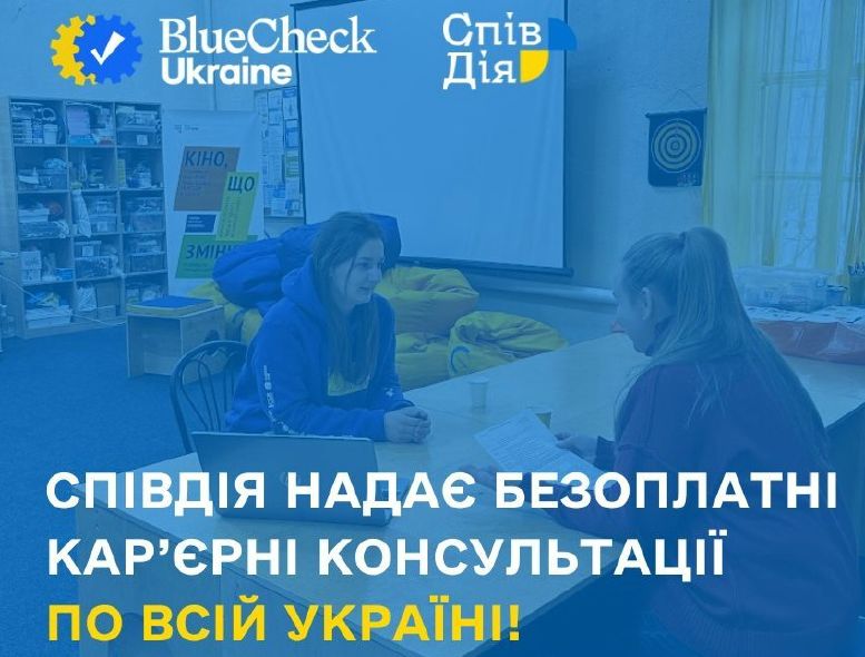 Вони необхідні, якщо ви: втратили роботу через війну, хочете спробувати себе у новій сфері, мрієте працювати дистанційно, навчаєтеся або перебуваєте в декретній відпустці й шукаєте підробіток, просто потребуєте підтримки й порад фахівця. Як записатися? Переходьте за посиланням та заповнюйте анкету: https://spivdiia.org.ua/career-consultation. Кар’єрне консультування надається за підтримки BlueCheck Ukraine. |