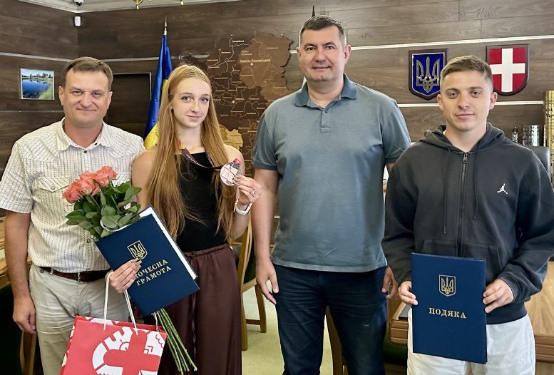 Ковельчанка Уляна Степанюк увійшла в історію українського спорту, здобувши першу для нашої держави бронзову медаль на дистанції 100 метрів на чемпіонаті Європи серед юніорів. Юну бігунку сьогодні відзначив голова Волиньради, очільник обласної федерації легкої атлетики Григорій Недопад, - пише на своїй сторінці у Фейсбук Волинська обласна рада. Уляна Степанюк та один із її тренерів Дмитро Повх поділились своїми враженнями від перебування у фінському Тампере, де й відбувалась цьогоріч престижна континентальна першість U20. Так, у фіналі забігу на 100 метрів дівчина була третьою з результатом 11,53 секунди, а напередодні, у півфіналі, вона встановила особистий рекорд — 11,50 секунди. Окрім того, що Уляна Степанюк здобула призерство юніорського чемпіонату Європи, вона також стала фіналісткою юнацького чемпіонату Європи, півфіналісткою чемпіонату світу серед юніорів, чемпіонкою та призеркою чемпіонату Балканської легкоатлетичної асоціації (АБАФ) та дворазовою чемпіонкою України серед юнаків і юніорів. Григорій Недопад високо оцінив результати легкоатлетки та тренерів Ковельської ДЮСШ імені Євгена Кондратовича з легкої атлетики Дмитра та Алли Повх, які готували та підтримували спортсменку. На знак вдячності він відзначив усіх почесними грамотами та подяками обласної ради. Як керівник обласної федерації легкої атлетики Григорій Недопад пообіцяв всіляке сприяння перспективній бігунці та тренерському штабу в частині підготовки до наступних престижних першостей, а також, при потребі, в реабілітації та відновленні спортсменки. |